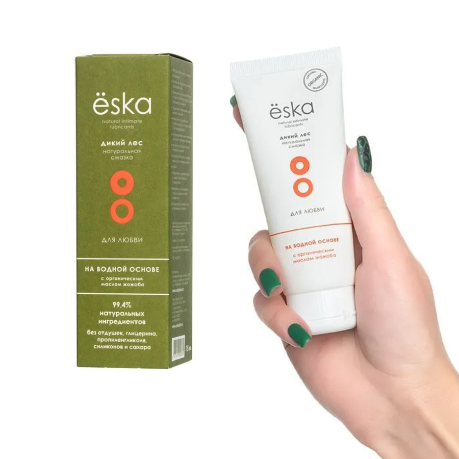 Дикий лес Ёska анальный лубрикант с добавлением органического масла жожоба увлажняет и защищает нежные ткани и обеспечивает длительное шелковистое скольжение.