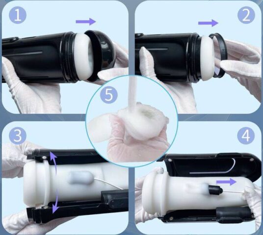 Пластиковый корпус мастурбатора легко вскрывается и Вы можете перемещать два виброэлемента по 4 отверстиям в силиконовом рукаве, тем самым по желанию распределяя вибрацию по самым чувствительным точкам члена.
