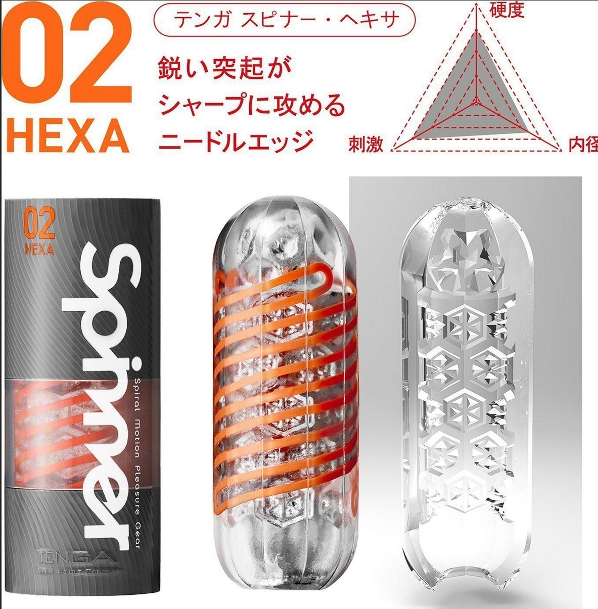 Hexa 02 Spinner мастурабтор от японского бренда Tenga имеет внутри спиральный рельеф, который как будто засасывает пенис в пучину страсти. Во время пенетрации создается ощущениу будто игрушка сама вращается вокруг члена.