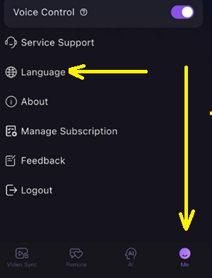 Для смены языка нажмите в правом нижнем углу круглую сиреневую иконку, чтобы перейти в настройки аккаунта. Затем нажмите на кнопку