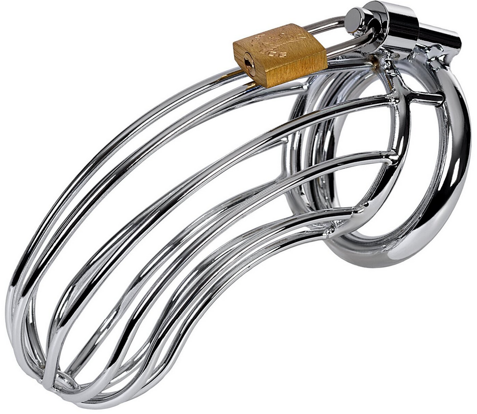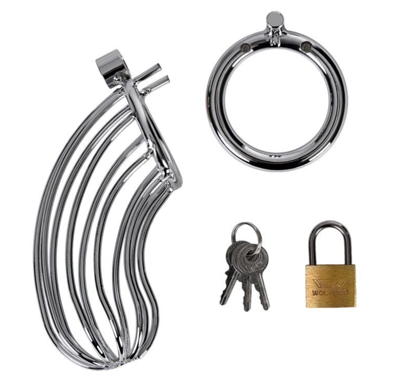 Состоит из кольца, которое надевается за мошонкой у основания пениса, и основной части — «клетки», которая охватывает сам пенис.