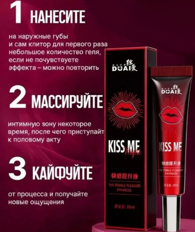 Kiss Me возбуждающий гель для женщин после нанесения на половые органы оказывает возбуждающее действие.