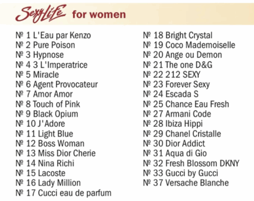 Аромат: Sexy Life созданы по мотивам известных ароматов. Для вашего удобства мы сделали сводную таблицу соответствия ароматов и номеров парфюма. Наличие определённого номера необходимо уточнить у оператора