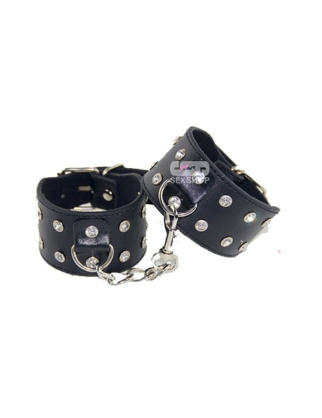 Наручники со стразами Дебора из кожзама — стильный и интригующий своим дизайном БДСМ-аксессуар.