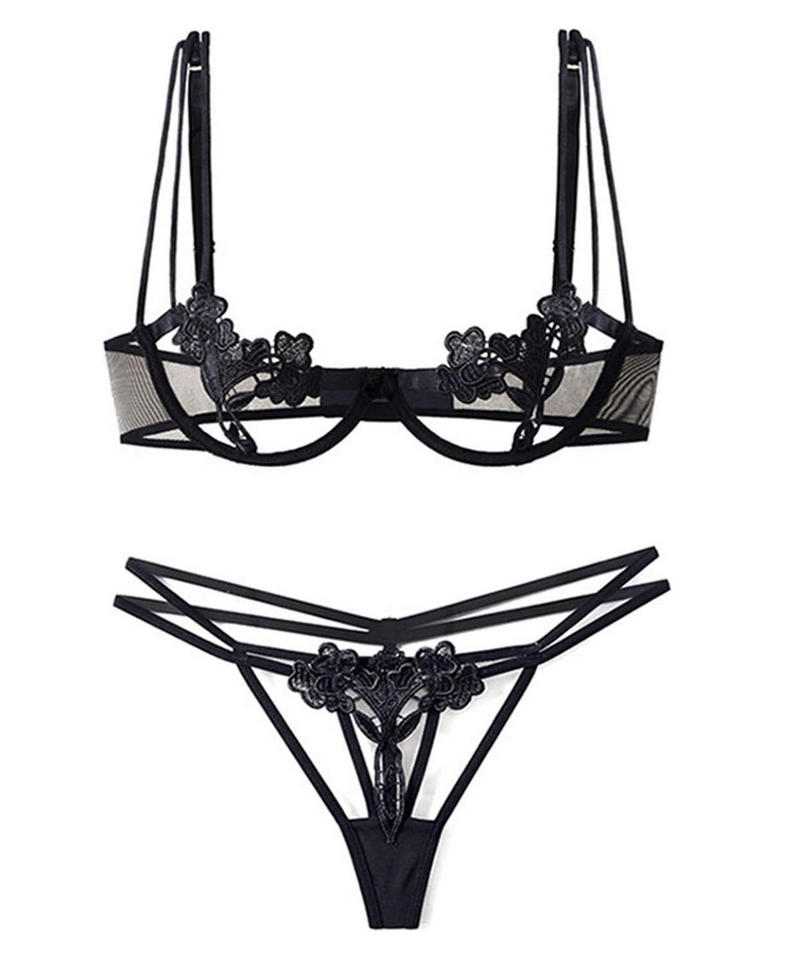 Комплект открывает взору почти что всё. И в то же время, скрывает самое важное — соски и зону бикини.