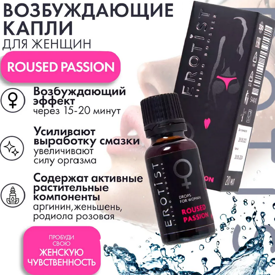 Капли повышают сексуальную активность, стимулируют выделение вагинальной смазки. Ещё средство может способствовать ярким множественным оргазмам. Уже через 10-15 минут из за усиленного притока крови к половым органам, у женщин наступает сильное половое возбуждение. Капли можно принимать ежедневно. Средство обладает накопительным эффектом, поэтому капли Roused Passion можно принимать курсом 30 дней.