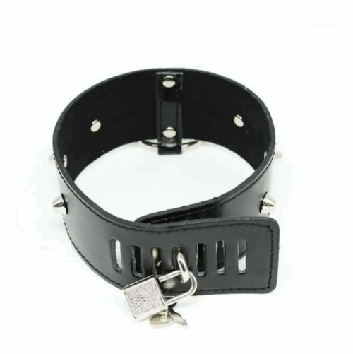 Широкий регулирующийся ремень из искусственной кожи подойдёт как к хрупкой женской шейке, так и к мужской шее. Ещё металлическая петля позволяет фиксировать положение ремешка замочком. В комплекте идут два ключа от замка.