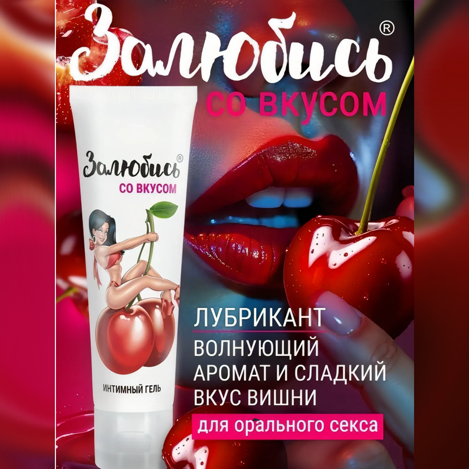 Вишня съедобный лубрикант линейки Залюбись наполнит Вашу близость ароматом спелой вишни. Водная основа лубриканта создаёт все условия для лёгкого скольжения.